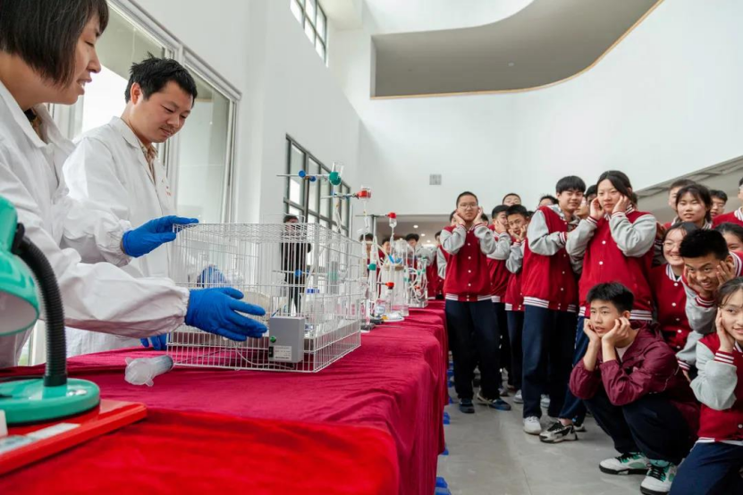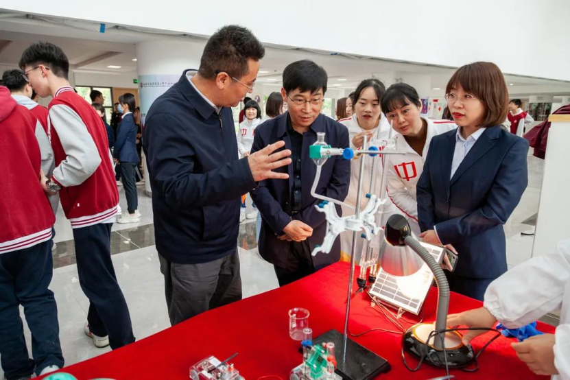 为培养学生的创新精神和实践能力,营造浓郁的科学氛围,激发学生爱科学、学科学、用科学的兴趣,让学生在活动中体验学习科学的乐趣,提升科学素养,推进素质教育的深入开展。2021年4月16日,成人色情 成人色情 在党支部书记张尊听,副书记赵华荣的带领下,组织党员参加雁塔二中举行探究性科普实验进校园活动暨“拓展性课程教学实践基地”揭牌仪式。