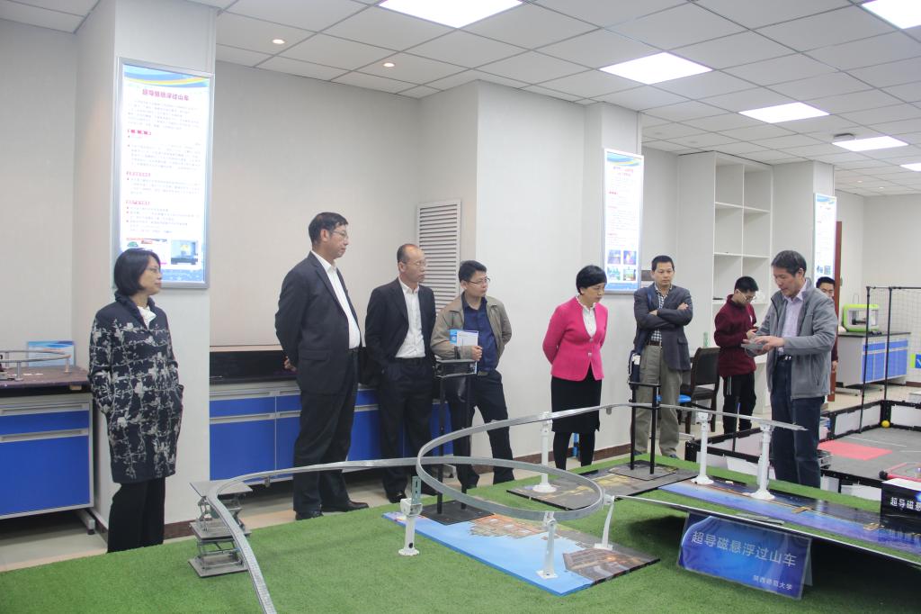 座谈结束后,李书记一行来到科学教育仪器研发中心,仔细观看了张宗权正高级实验师团队研发的光学教育仪器、秦健副教授团队研发的VEX教育机器人、白云山副教授团队研发的凝固点测定仪等仪器以及杨万民教授团队研发的超导电磁系列教学仪器的精彩演示,认真聆听了各团队负责人的详细讲解并不时提出有关问题。