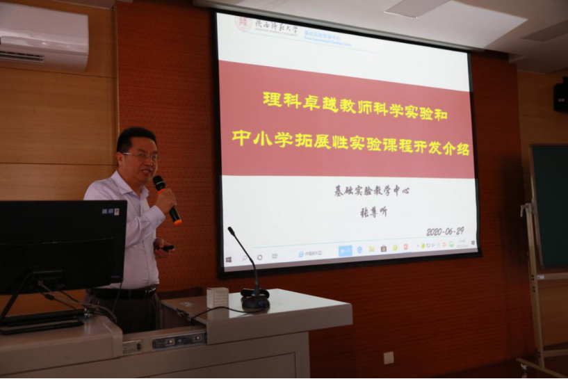 为了全面贯彻全国教育大会精神,围绕教育现代化的时代新要求,落实立德树人的根本任务,继续深化教育教学改革,提高基础教育质量, 2020年6月29日下午,成人色情 在雁塔校区教学七楼举行了“卓越教师科学实验”课程研讨会。邀请成人色情 副校长杨祖培、本科教学督导委员会主任钞曦旭,教师教育办公室主任李铁绳以及计算机科学学院、化学化工学院、生命科学学院、地理科学与旅游学院等多个教学单位十余名专家,针对卓越教师科学实验课程进行深入研讨。 会议由中心副主任赵华荣主持。