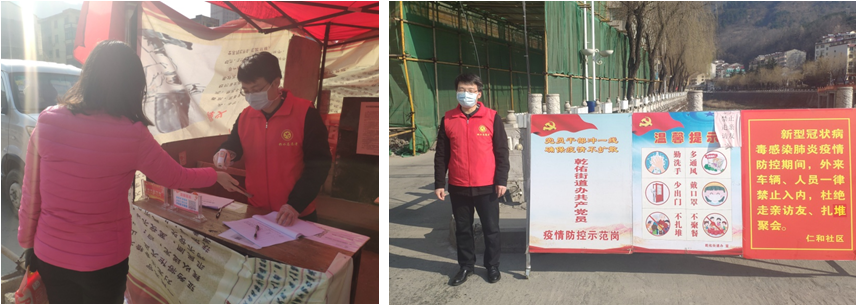 2020年1月20日,突发的新冠肺炎疫情警报正式拉响,荆楚大地陷入了极端危险的境地,疫情蔓延,一旦失控,后果将无法估量。在这个危急时刻,党和国家领导人坚持人民至上、生命至上,果断采取防控措施。我们的人民紧密团结在党中央周围,听党指挥,一切跟着党的指令行动。身为一名共产党员,中心支部魏彦林同志勇挑重担,面对疫情迎难而上,主动请缨投身到家乡柞水县乾佑街疫情防控的志愿服务中。宣传疫情知识,引导社区居民科学防疫,不信谣,不传谣;帮助防疫工作人员搬运物资,做好基层工作;协助社区工作人员,对小区的住户及来访人员进行登记,测量体温,发放小区通行证等。他以实际行动践行了青年党员的责任与担当,为打好疫情防控阻击战提供了坚强的后盾力量。他是寒冬的热心人,是勇敢防疫的“逆行者”,为社会的稳定和居民的安全奉献了一份无私的爱心。