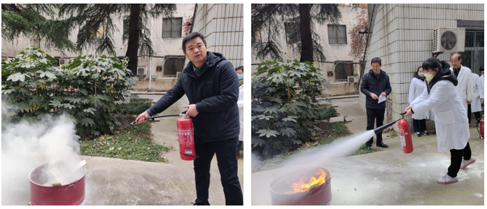 10时整,工作人员为师生们讲解实验室常用灭火器、灭火毯的灭火原理和使用方法,在其演示和指导下进行化学品燃烧和电气燃烧的灭火技能实操训练。