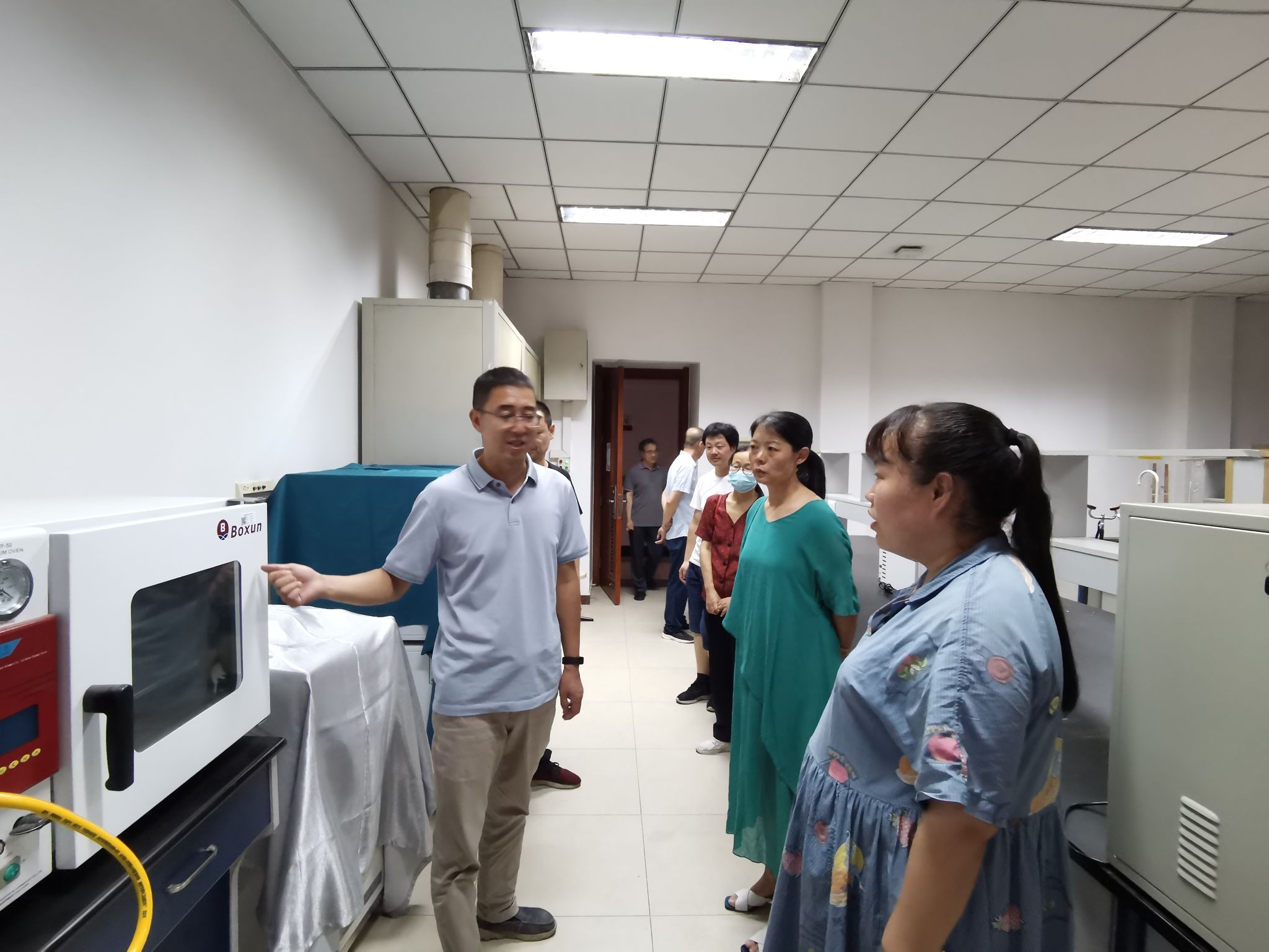 7月12日下午,由陈晓明主任、苏争艳副主任、各专业负责人及安全委员会成员组成的检查组对中心教学实验室、实验准备室及暂存库房进行了假期前安全检查。检查组依据《高等学校实验室安全检查项目表(2024年)》有关要求,紧盯暑假期间实验室安全重点,对实验室重要危险源、关键环节和安全设施等方面进行了细致检查,实地对实验室水电、危险化学品存放、危险废弃物储存、特种设备管理、以及暂存库房等进行了全面排查,对发现的问题要求及时整改,消除安全隐患。检查中,陈晓明主任强调,安全无小事,防患于未然,要求所有老师牢固树立安全意识,守住安全底线,确保实验室和人身安全。本次检查,为全面落实我中心实验室安全责任制,加强暑期实验室安全管理,杜绝实验室安全事故隐患提供了保障。