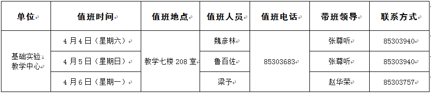 2020年清明节值班安排表