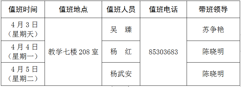 2022年清明节值班安排表