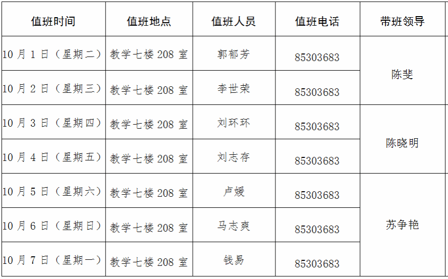 2024年国庆节值班安排